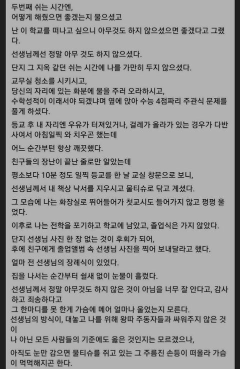 왕따 당하는 학생을 자신만의 방식으로 도와준 선생님