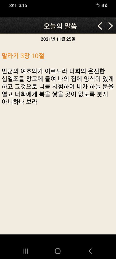 만군의 여호와가 이르노라 너희의 온전한 십일조를 창고에 들여 나의 집에 양식이 있게 하고 그것으로 나를 시험하여 내가 하늘 문을 열고 너희에게 복을 쌓을 곳이 없도록 붓지 아니하나 보라