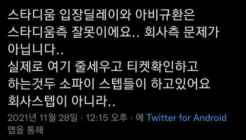 무턱대고 ㅎㅇㅂ 욕하는 방울들 있길래... 나도 ㅎㅇㅂ 일 하는 거 ㅈㄴ 맘에 안 드는데 그래도 이건 스타디움 잘못인 거 같아서 걍 글 써봄 우리 오늘 맘 안 좋고 씁쓸한 거 아는데 그래도... 내가 먼 말하려는 지 알지?