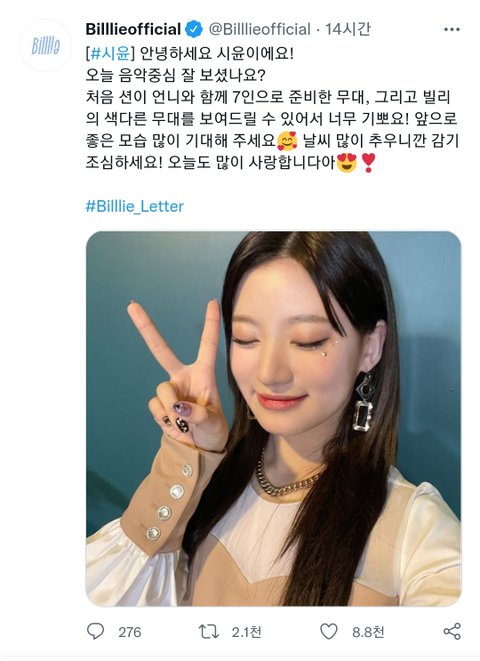 김수연 아니었으면 난 빌리라는 걸그룹이 있다는 거 평생 몰랐을 것 같음... 좋게 좋게 생각해요