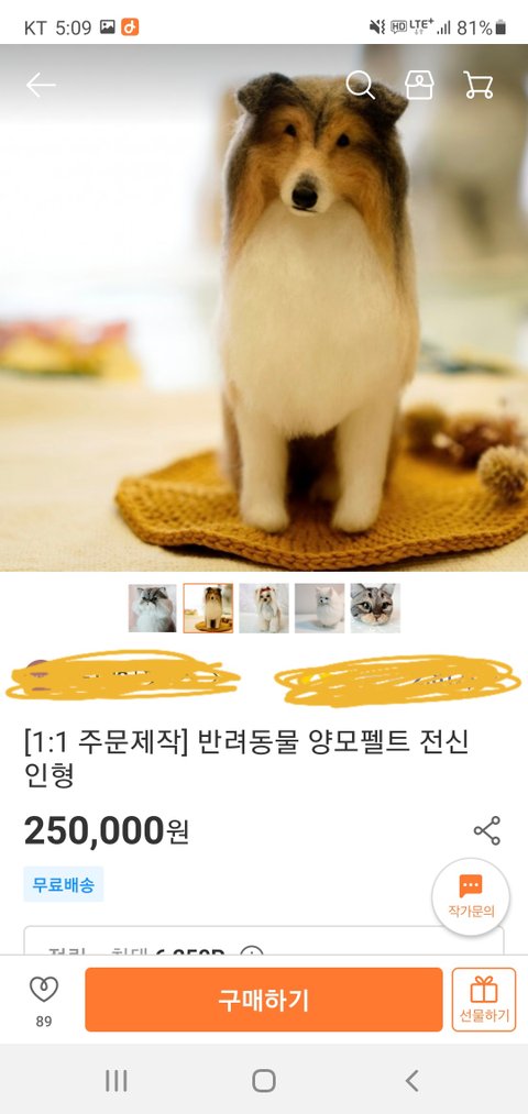 다른 주문제작 유명한 작가님들은 예약이 많아서 우리 강아지를 정성스럽고 퀄리티 높게 만들어주기 어려우실 것 같아 비교적 리뷰수가 적은 작가님께 부탁드리게 되었습니다.