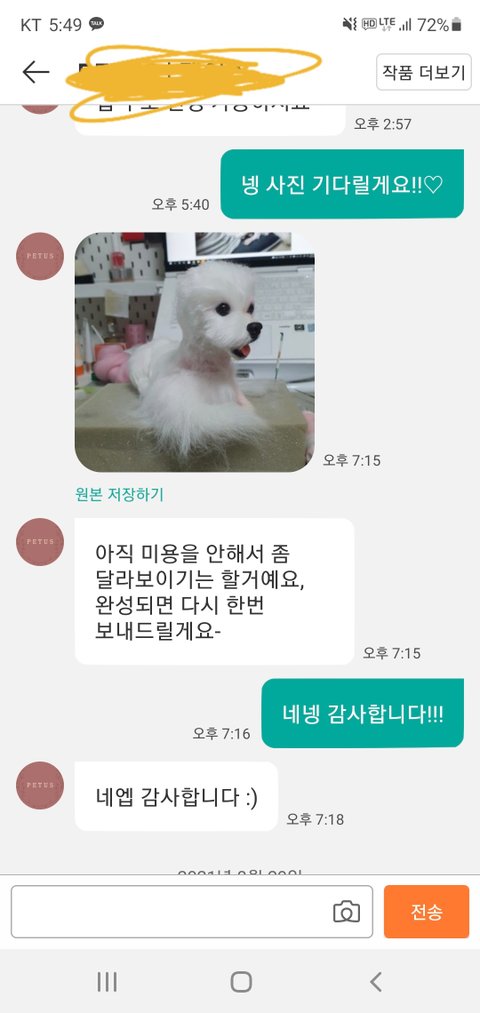 작가님의 말씀대로 정말 저희 강아지와는 차이가 커보였고 미용을 안해서 그렇다는 말씀을 믿고 기다렸습니다.