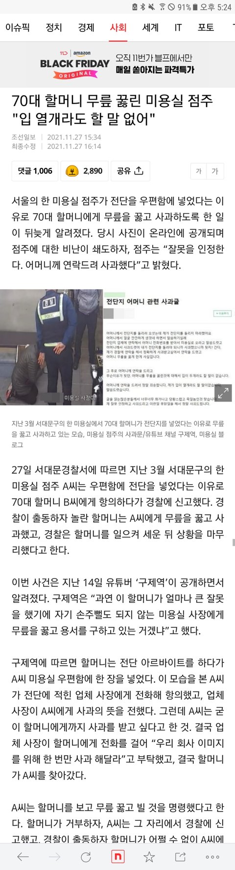 70대 할머니한테 무릎꿀린 한남