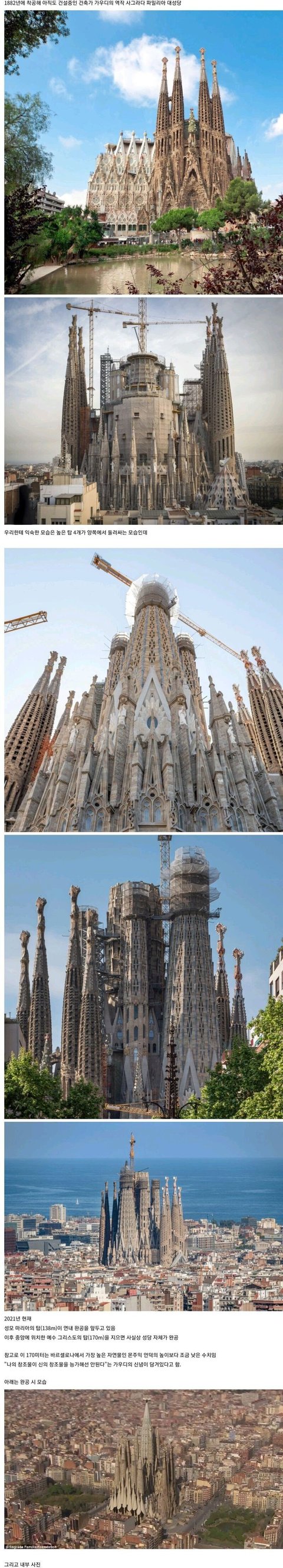 (밑에 잘못된 설명이 있어서 위에 다시 올림.) 기부금으로 운영되는건 맞지만 일부러 늦게 올리는게 아님. 현대의 그 누구도 가우디의 설계를 해석하기 어렵기 때문이 제일 큼. 내가 기억하기론 가우디 사후에 내전으로 설계도와 모형도 많이 파괴되었고 묘지까지 파헤친적이 있는데 30여년간 공사 중단된적도 있음. 스페인의 주요한 관광스팟이기 때문에 기부금 홍보에 중요하긴 하고 계속 이슈가 되어야 좋긴 한데 (건설비용 충당은 다 되었고 그건 스페인에서 성당의 상징성에 비하면 기부금 없어도 예산마련 어려운일 아님) 그건 표면적 이유이고, 150년간 옛날방식으로 짓는 현존하는 유일무이한 건축물이란 상징성 때문임. 옛날 방식은 인부들 모두가 디자인에 대해 이해하고 건축공부를 하며 모형을 끊임없이 테스트해서 하나씩 올리는데 (그래서 소규모 인부로 100년 걸리는 것) 성당의 상징성이 너무 크기 때문에 이 방식을 고수해서 계속 세세하게 신경써야 하는 딜레마가 생김. 많은 인원을 넣을순 있지만 가우디 건축방식은 세세하게 치밀하게 디테일을 채우는 방식이라 구멍하나조차도 종소리에 영향을 주고, 창문 하나가 빛의 밸런스를 망가뜨릴수 있으므로 온전하지 않고 듬성듬성한 설계도로 실제 공사하는 중에도 구멍 하나로도 시행착오가 반복되고 있는중임.
