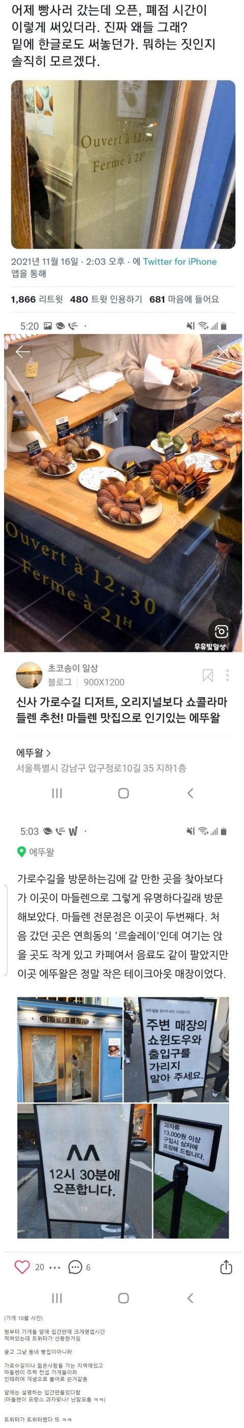 영업시간 불어로 썼다고 욕먹은 빵집의 진실