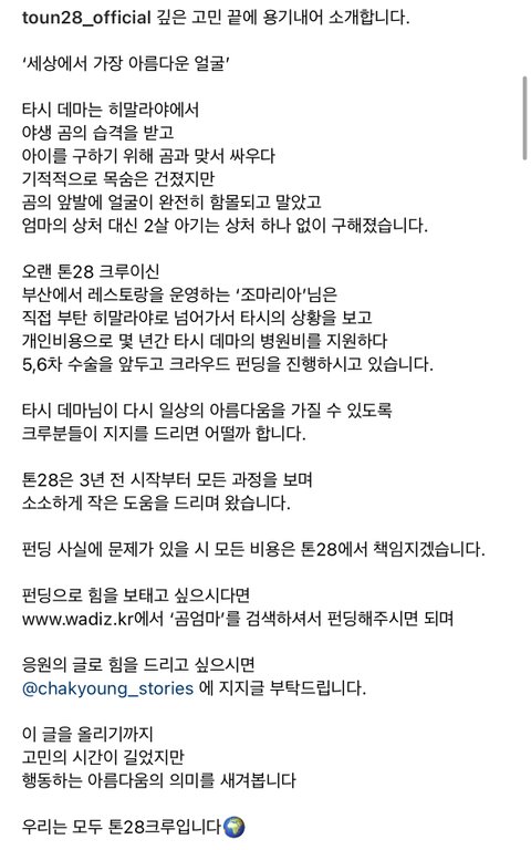 내용은 이렇다는데 이분 수술을 개인이 후원하면서