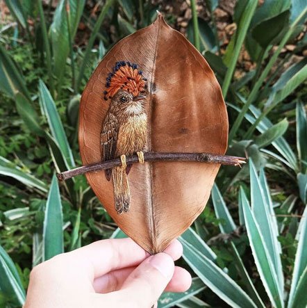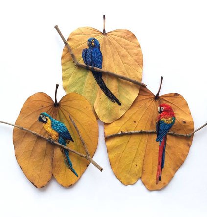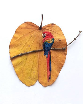 낙엽에 촘촘히 새긴 완벽한 자수