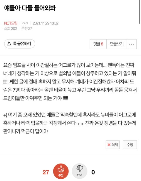 어그로 먹금 잘 하자 얘들아~~ 짱드림 짱드프들 사랑해~~❤️