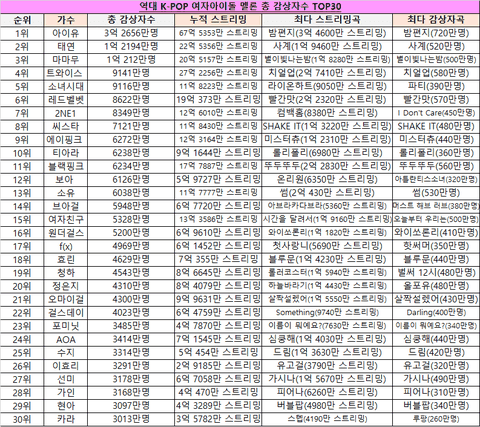 최다 스트리밍곡 : CHEER UP(2억 7410만 스트리밍)