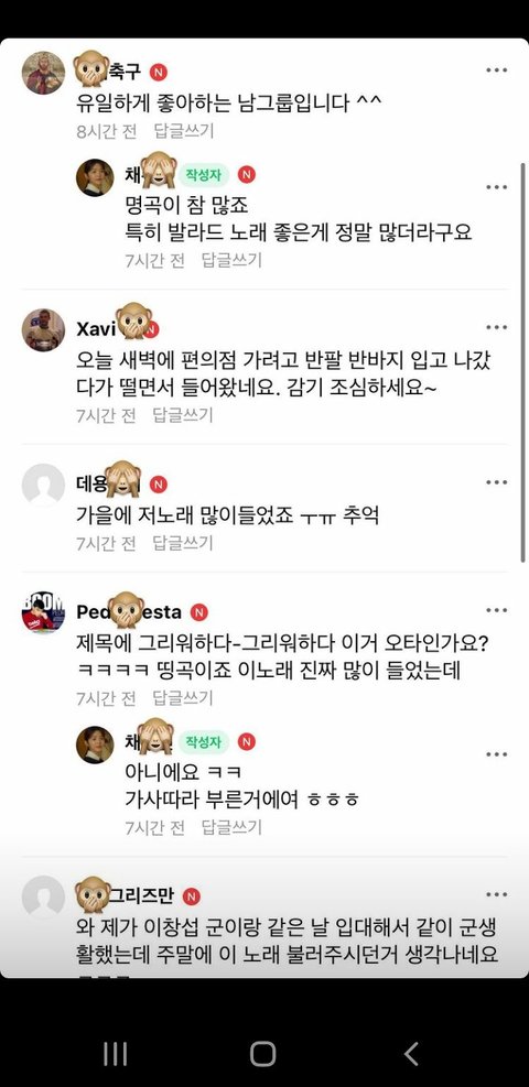 예전에도 그리워하다 노래 올려주시고 너무 훈훈하당ㅎㅎ