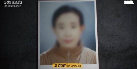11년동안 미제 사건으로 남아 있는 부산 버킹검모델 여주인 살인 사건2021년 11월 27일 토요일밤 공중파 SBS 그것이알고싶다 방영 범인 추적흉기로 피해자를 무려 74번을 찔러 이토록 잔혹하게 살해한 이유가 뭘까?사건 당시 상황과 똑같이 재연된 스튜디오를 방문한 전문가들은 하나같이 범인이 피해자와아주 잘하는 면식범일 가능성이 상당히 높고 극도로 흥분한 상태에서 오버킬 한것이라고 말한다그러나 피해자의 친오빠들과 주변 친구들은 피해자가 워낙 착하고 법 없이도 살사람이라며원한관계를 가질 만한 사람이 없었다고 한다사건이 일어날것으로 추정되는 새벽시간 사건장소에서 나오는 유력 용의자의 모습이 촬영되고 현재 이남성을 추적 중이다 피해자의 묘소를 찾은 지인과 친오빠들은 눈물을 흘리며 범인이 꼭 잡히길 바란 다고 했다
