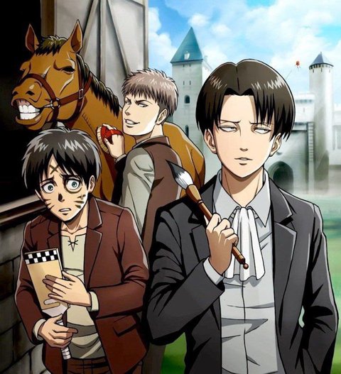 에렌 얼굴에 낙서하고 기분 좋아서 포커페이스 잘 유지하는 리바이 얼굴에 신난거 다 보이는 것도 킹 받음