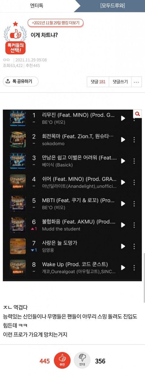 아이돌충들이 먼저 쇼미 후려치는글 톡선보내서 쓴글이니 방탄팬들아 자격지심 갖지마 니들 까는게 아니고 아이돌충을 까는거야