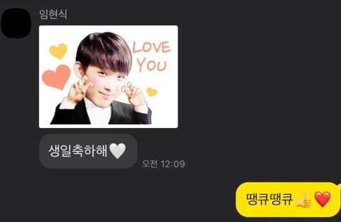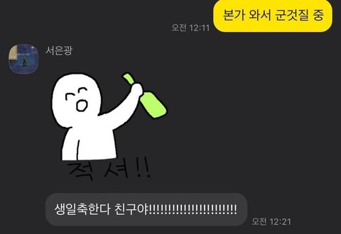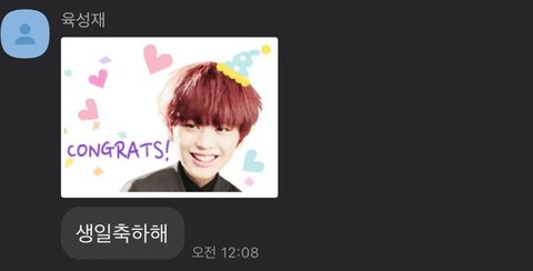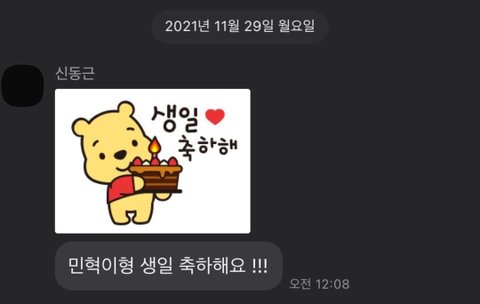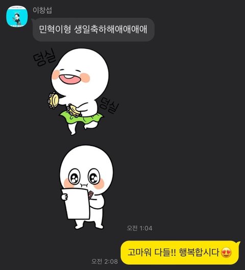멤버들이 단톡방에서 각자 이모티콘 + 생일 축하 문자를 보내주는데