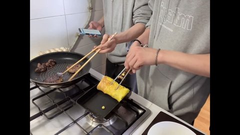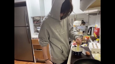 민찬이 한손으로 깬 계란으로 만든 두툼한 계란말이