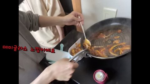 아무리봐도 프라이팬에 딸려온 집게가 아닌 것 같은 뚝배기 집게로 웍질중