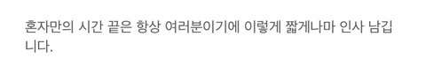 이제 좀 추스럿는데 아까 보자마자 혼자만의 시간 끝 <<여긴 눈물 걍 줄줄이엿음..
