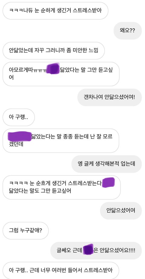 제발 닮았다고 말해주길 바라는거마냥 진짜 뭐 스무고개놀이 하나 얼굴은 나쁘지않게 생겼는데 무슨 ‘난 @@ 닮음’에 세뇌중인거같음 ㅅㅂ 안닮았다고 몇번을 말해야 알아쳐먹지 팬들 기분 나쁠까봐 이름 가림