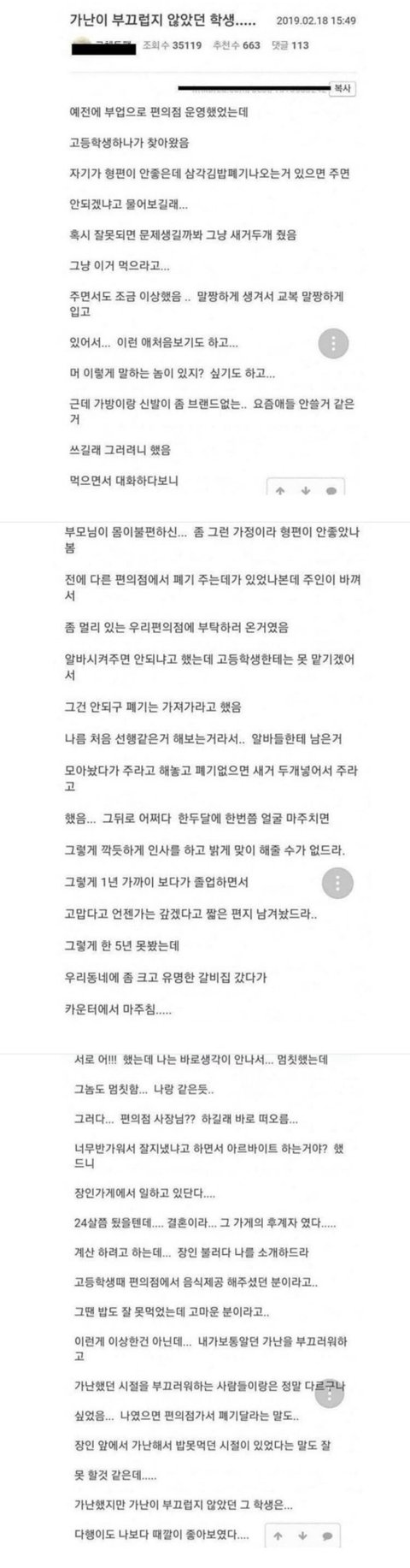 가난하다고 부끄러울 거라 생각하는 마인드를 부끄러워해야할거 같은데