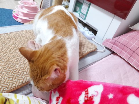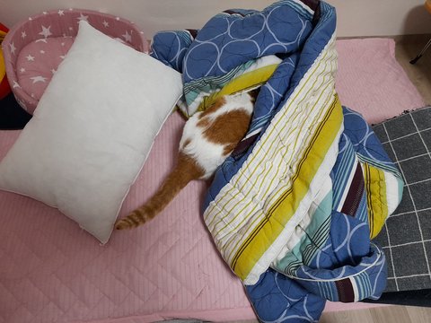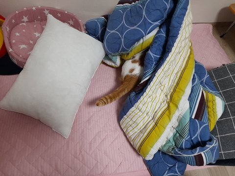 집사 출근하면 이불속에서 취침하기 위해 들어갈려고 안감힘을 씀.