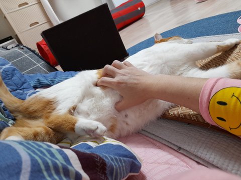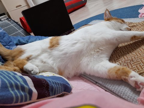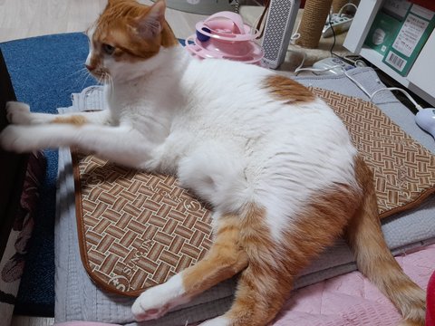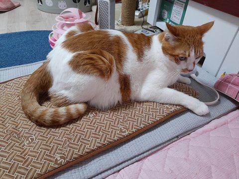도칠이가 잠시 화장실 간 틈을 이용해 집사자리에 집사가 누웠음.