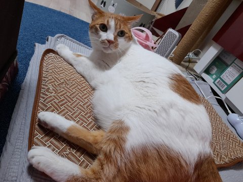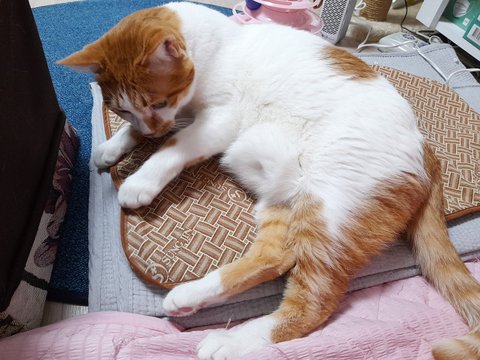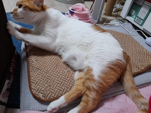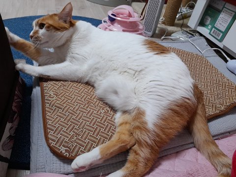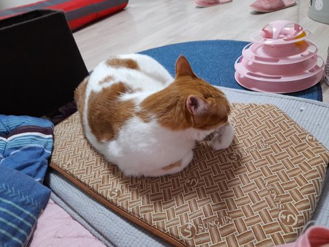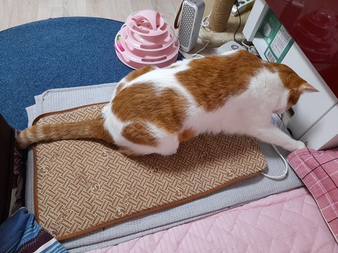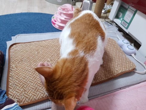 집사 배에 찜질하는 찜질팩을 이제 도칠이가 사용함.