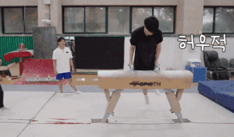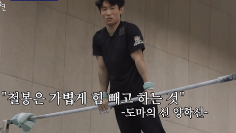 양학선 선수: 근데 철봉 종목에선 그렇게 힘쓰면 안되는 거예여
