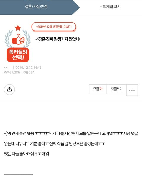 옛날에 서강준 잘생겼다고 올린 쓰니인데
