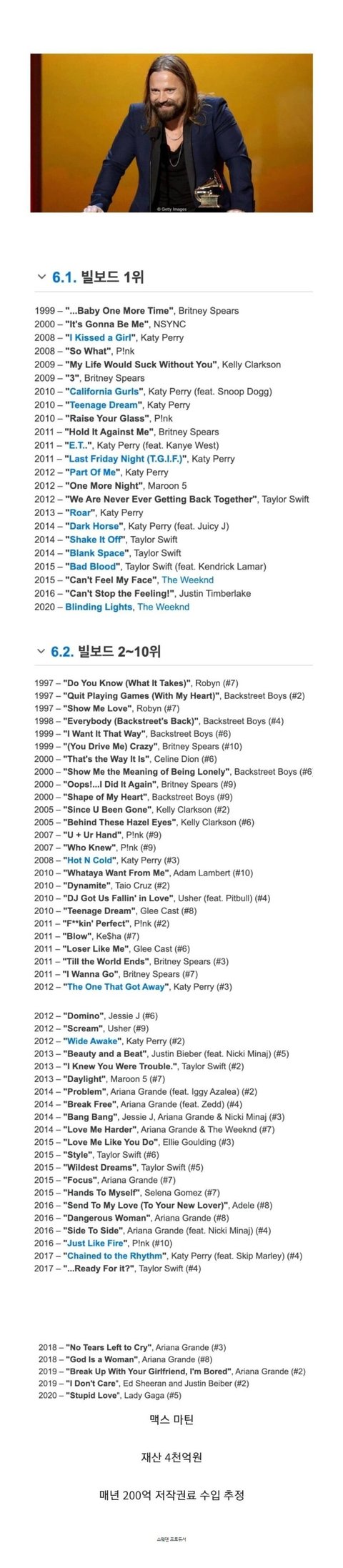 전 세계 저작권료 1위 작곡가 수입 클라스