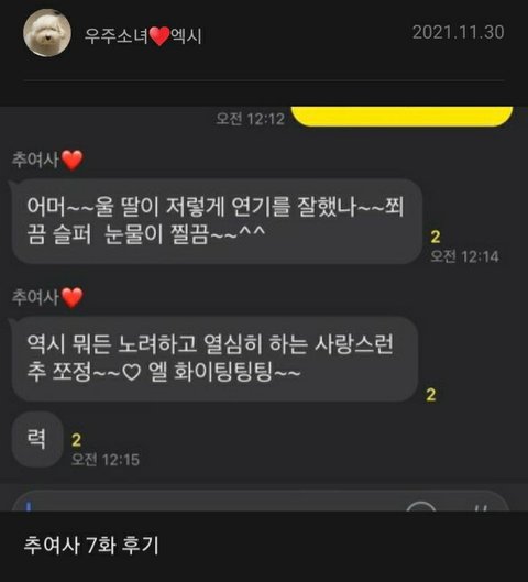 한 회 한 회 끝날 때마다 공카에 와서 어머니의 후기를 풀어주는 중ㅋㅋ