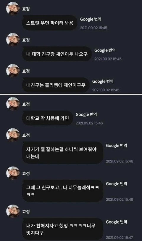 : 효정이가 제인한테 먼저 친해지자고 말 걸음