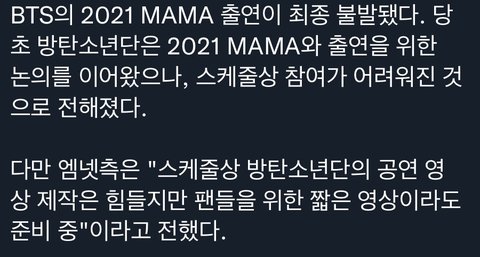 마마 공연 영상은 스케줄상 힘들고