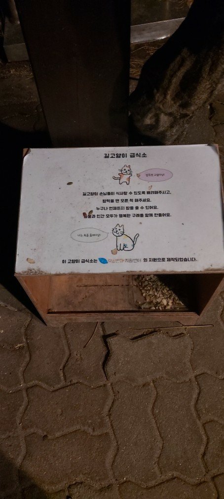 집근처 공원은 고양이천국으로 사료와 북어살 물 등을 놓아두는 장소가 있다