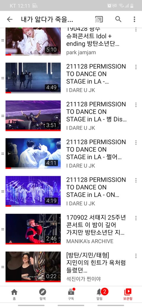 내 유튜브 재생목록인데 여기에 사생홈마 있음?