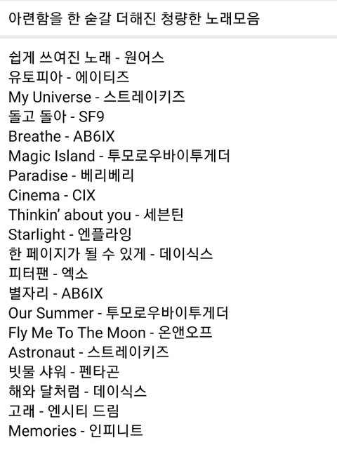 우리끼리 부둥부둥 하는 시간 갖자 그리고 노래 추천도 하고 수록곡 같은거! 컴백일정 있으면 공유하장