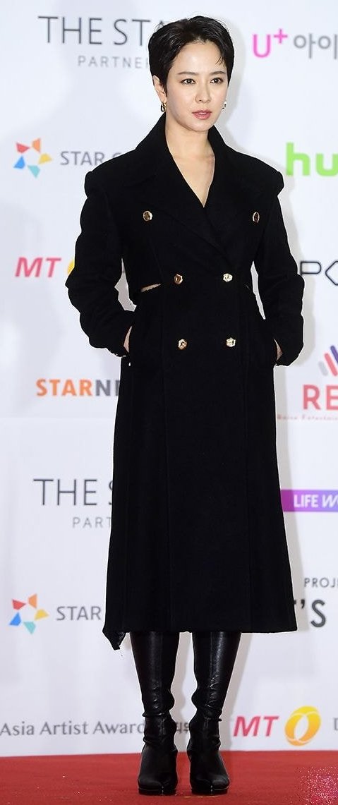이 날 송지효는 블랙 색상의 코트에 블랙 롱부츠를 착용했고,
