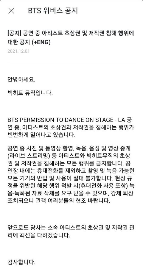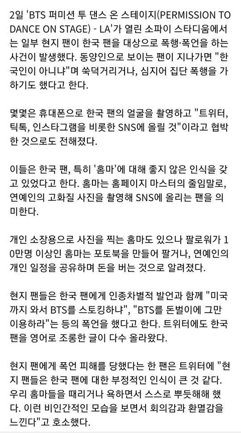 외국팬들이 단체로 한국 홈마 인종차별,협박,폭행하면서 빅히트공지를 방패로 합리화하는중