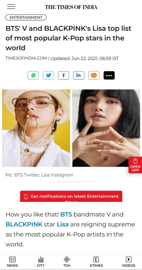맞지않음? 국가별로 취향따라 뷔,정국 / 리사,제니 차이는 있겠지만 일단 틀린말은 아님 지금 방탄이랑 블핑만큼 팬덤 규모 큰 셀럽은 없으니까