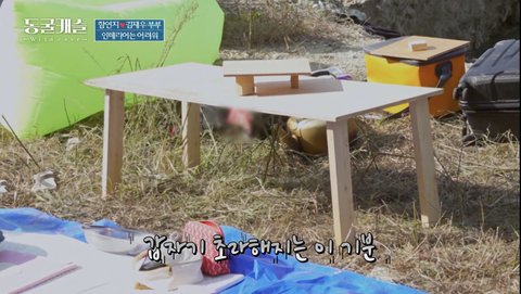 남편이 낚시 가서 고기 잡아오는 사이 함연지가 엄청 열심히 식탁 만들더라구요₩~