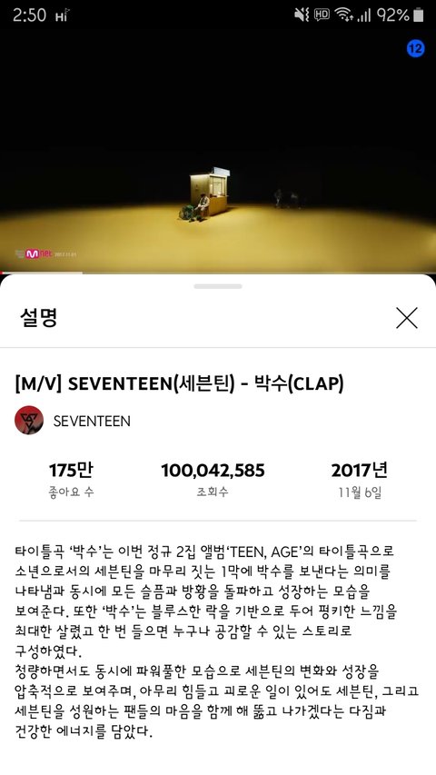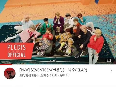 열심히 찍어준 세봉이들과 열심히 봐준 캐럿들과 좋은 뮤비 만들어주신 제작팀들과 열심히 세븐틴 서포트해준 스텝분들 모두모두 축하해!!