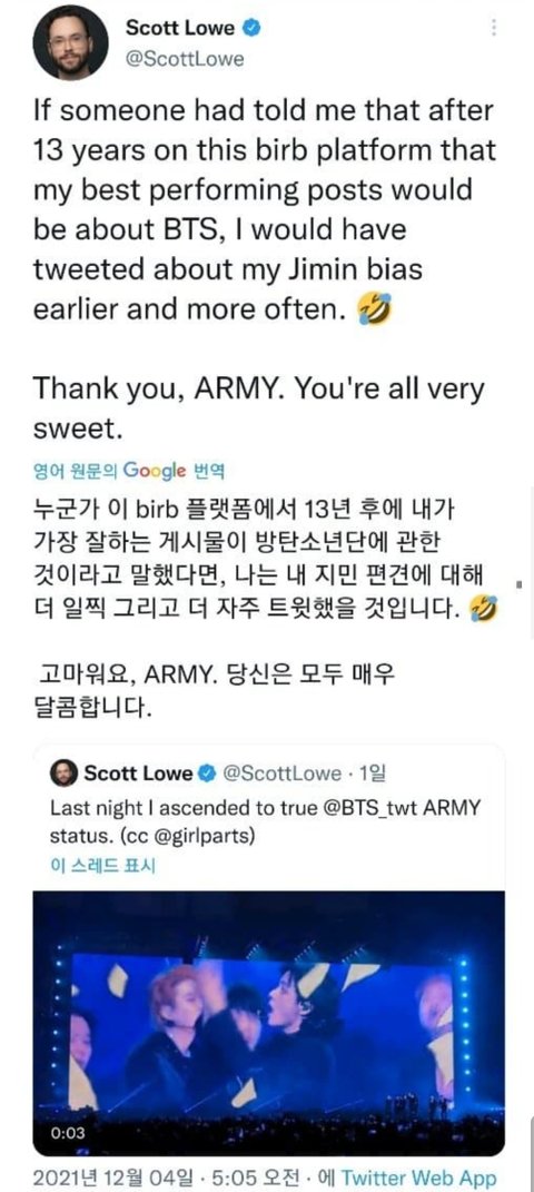 미국엔터이사님도 지민이한테 반하고 오심..