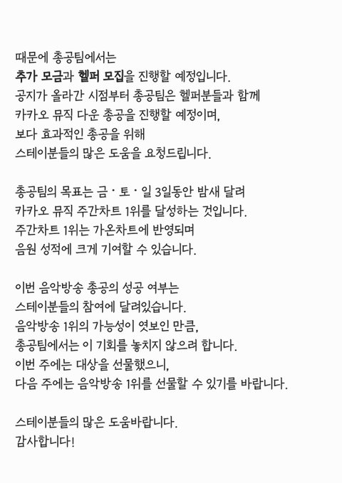 강제사항은 아니지만 음방 일위 가능성이 보이는 만큼