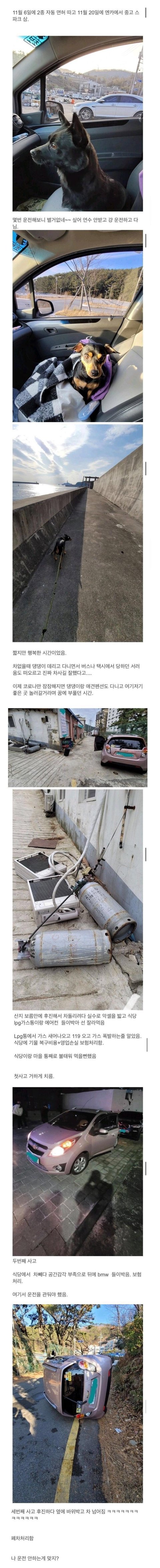 초보면서 옆자리 강아지; 강아지 벨트로 고정해 놓은 것도 아니고 진짜 노답이다