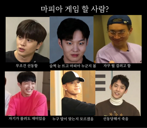 6 : 형, 형 이사자리 걸고 아니라고 할 수 있어? 1 : 나 진짜 아니야 진짜로! 이사 자리 건다 내가! 6 : 오케이 그럼 현시기 형이네 4 : 흐흐흫 나 아니야 흐흫 3 : (마피아 봤지만 봤다고 말할 수 없음) 현시기는 내가 봤을 때 아니야 6 : 형이 어떻게 알아? 형이 어떻게 아냐고 형 마피아 봤어? 3 : (뜨끔) 아니야하! 6 : (의심) 그럼 답 나왔네 프니엘 형은 왠지 아닌 것 같고 지금까지 가만히 있던 미녀기 형이 마피아네 형이 이런 게임 할 때 가만히 있을 사람이 아니야 2 : (억울) 아니 왜 그럼 나야?! 나 가만히 있을 사람이야(?) 5 : 형, 형이었어요? 대박! 2 : 아니 나 아니라니까? 1 : 흐하핳 민혁이 맞네 민혁아 이제 포기해 크킄크크 2 : 와! 서은광 너가 마피아지! 4 : (무시) 그럼 민혁이형 일단 죽이고 시작하자 1명은 죽여도 되잖아 2 : (울분) 야 임현식! (람찌 사망)