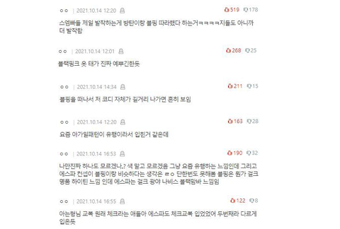 에스파가 블핑 따라했다고 하는글에 개추2000개 박히고 배댓도 전부 저런내용들임