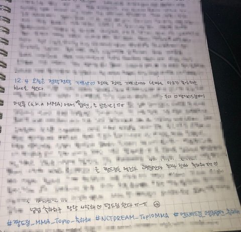 아까 탑텐받았을때 썼던 일기ㅜㅜ 저거 딱 다 쓰자마자 제노가 공계랑 버블와줘서 감격해서 뒷장에 더썼음 ㅜㅜ