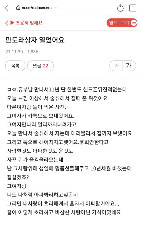 얼마나 만만하면 가지고 놀다가 와이프한테 걸리니 빠이 ~하고 바로 버리겠어ㅋㅋㅋ