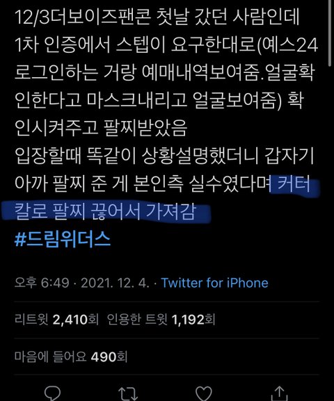 어제 오늘 열린 더보이즈 콘서트에서 티켓끊고