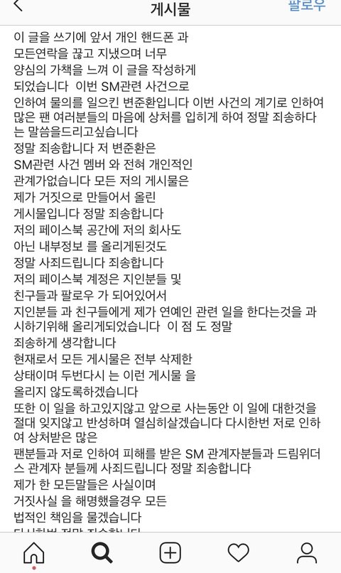 사과문도 여러번 올렸음