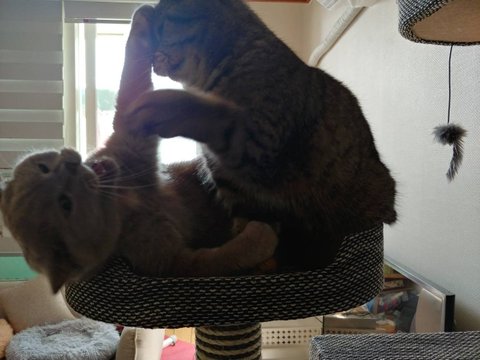 둘다 성장기라 기존에 캣타워가 작아져 바꿨어요~좋아하네요